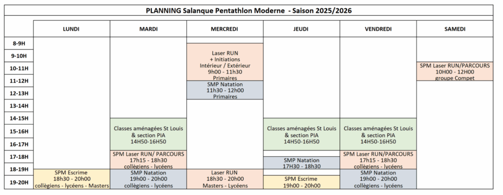 Le Pentathlon Moderne est un sport mêlant 5 disciplines. Les plus jeunes commencent le Laser Run dès 7 ans, par la course et le tir au laser, s’initient ensuite à l’escrime, au parcours d’obstacles et à la natation.